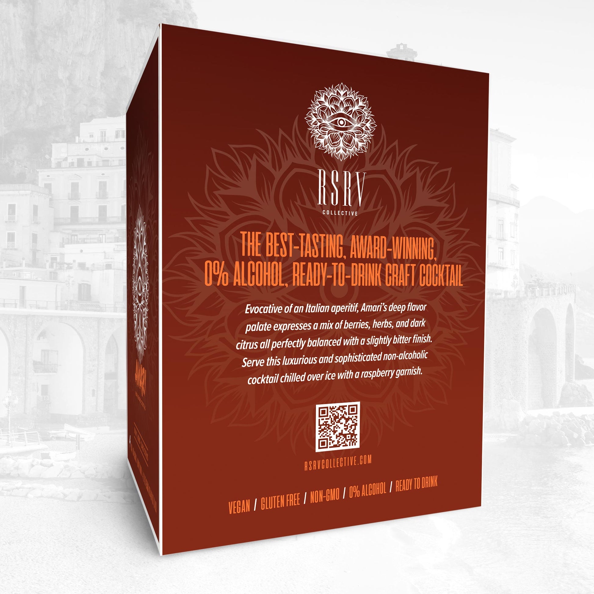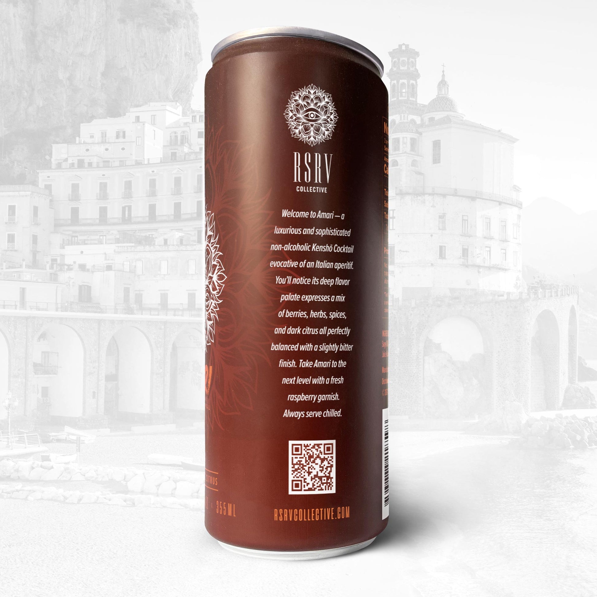 Welcome to Amari — a luxurious and sophisticated non-alcoholic Kenshō Cocktail evocative of an Italian aperitif. You'll notice Amari hints at its earthiness & bitterness through its bouquet. A deep flavor palate expresses its mix of herbs, spices, plants, and dark citrus. All perfectly balanced with a slightly bitter finish that will transport you to the Amalfi coast. Take Amari to the next level with a fresh raspberry garnish. Always serve chilled.